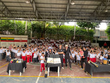 Presentación con la población de primaria, cerca de 400 estudiantes. En el marco del trabajo articulado con la Fundación Germán Uribe.